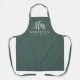 Pour les jeunes mariés, ce tablier chic vert foncé et blanc présente "Mrs" dans un script élégant et moderne avec un nom de famille et une date "établie". Fait une douche nuptiale mignonne ou un cadeau de bachelorette!