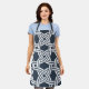 Moderne Géométrique MCM Marine Bleu et blanc tendance Mid-Century Motif moderne Abstrait Cercle Apron Choisissez n'importe quelle couleur au lieu du blanc pour le motif et choisissez parmi plusieurs couleurs différentes pour les cravates.