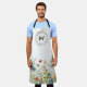 Brighten your kitchen with this charming personalized apron, featuring a vibrant meadow of wildflowers blooming along the hem. The upper chest displays a delicate, hand-illustrated leafy wreath encircling a bold, customizable monogram for a truly unique touch. With its crisp white background and pops of red, blue, and yellow flora, this apron perfectly captures the essence of a spring garden. It's a wonderful gift for gardeners, bakers, and home chefs who love to bring a bit of the outdoors inside.