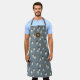 Ce charmant tablier à thème Parson / Jack Russell Terriers dispose de 13 JRTs illustrés / PRTs avec diverses marques brun et noir tête et corps plus 13 balles de tennis dispersées aléatoirement disposées dans un motif goutte sur un arrière - plan bleu ardoise personnalisable - chacun des chiens est debout avec une adorable inclinaison de tête, vous pouvez lancer une des balles - personnalisez avec un monogramme personnalisé - Russell Terriers avec balles de tennis © katz_d_zynes 2020