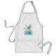 Un tablier décoré d'un oiseau moqueur gris sur un poteau avec des fleurs sauvages bleus fleuris dessinés à l'encre et peints à l'aquarelle. Inspiré par l'oiseau de l'état et la fleur de l'état du Texas.