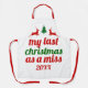 "Mon dernier Noël comme un raté" arceau rouge vert cerf tout-en-un imprimé. Il présente le texte "Mon dernier Noël comme une mante" en rouge et vert ainsi qu'un arbre de Noël avec des cerfs des deux côtés et de l'année.
