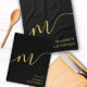 Tablier Monogramme moderne Script Calligraphie Black Gold