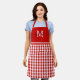 Ce tablier monogramme est doté d'un motif en vichy rouge et blanc avec un rouge solide en haut, où vous pouvez ajouter votre nom initial et votre nom noir.