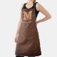 Moderne, cuir marron, écriture, tablier monogramme. Personnalisez-le avec votre initiale et votre nom.