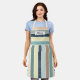 Ce tablier est décoré d'un motif rayé vert pastel, jaune et pêche. Customisez-le en ajoutant votre nom, stylisé dans une police serif simple et centré en haut de l'tablier.