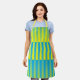 Tablier Motif bleu jaune vert rayé