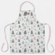 Cet adorable tablier présente un motif de Noël moderne et fantaisiste composé de sapins, de feuillages festifs et de flocons de neige dans une belle palette de couleurs douces et feutrées, rose pâle et diverses nuances de vert.