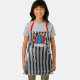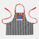 Cool et amusant coloré bleu, rouge, jaune et blanc coloré bande dessinée livre pop art thème inspiré sur un joli blanc et blanc rayures verticales design motif. Avec place pour customiser ou personnaliser avec le nom, monogramme, initiales ou (limité) texte de votre choix. Style moderne et artsy pour l'art tendance savvy et fantaisie chic branché, look rétro vintage ou amoureux de motifs abstraits. Unique, joli, décoratif, tendance et tendance cadeau d'anniversaire ou de Noël pour vos proches, enfants, amis ou autres membres de la famille qui aiment cuisiner ou bricoler dans la cuisine.