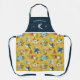 Tablier floral jaune et bleu moutarde monogrammé avec votre nom de famille, initiale, et l'année où votre famille a été établie en polices blanches contre un arrière - plan bleu foncé. Le motif floral présente des fleurs bleues, coralliennes et jaunes pâles, des feuilles verts et des baies pâles, contre un riche arrière - plan jaune.