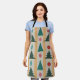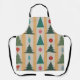 Ce tablier présente un design moderne du milieu du siècle, composé d'arbres de Noël et d'ornements accrochés sur une guirlande avec un arrière - plan d'or et d'argent.