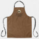 L'tablier professionnel présente un design moderne avec un emblème en monogramme d'or métallique brossé sur cuir daim brun look arrière - plan texturé.