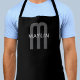 Tablier Nom Monogramme d'apparence moderne | Noir gris bla
