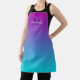 Ce tablier est décoré d'un dégradé violet foncé, bleu et turquoise avec un nom personnalisable et un monogramme en haut.