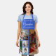 Elégant 5 tablier photo collage avec personnalisable nous vous aimons typographie script grand-mère et personnalisé avec des noms petits-enfants sur personnalisable arrière - plan bleu ultramarine.