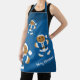 Un tablier qui comporte trois, souriant, en pain d'épices homme Père Noël cookies sur un arrière - plan bleu avec les mots personnalisables "Joyeux Noël" en blanc. Ce tablier est prêt pour les vacances de cuisine amusant, ou pour apporter la joie de Noël à n'importe quel moment de l'année. Pain d'épices Père Noël Bleu Noël Apron Sweetsham Food Art | ©Melissa Patton - Artiste/Illustrateur
