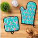 Ce tablier à jet bleu Palm Springs avec des palmiers pastel est tellement amusant ! Jouer des teintes douces multicolores sur un arrière - plan turquoise dynamique invoque l'ambiance moderne du milieu du siècle de l'oasis désert Palm Springs, Californie.