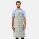 Patterned apron featuring colorful repeating motifs of various animals. Shown alone and worn by a smiling person, conveying a cheerful tone.