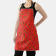 Tablier rouge vif à motifs de piments chauds rouges et verts dessinés à la main, avec un diamant monogramme sur le devant où vous pouvez ajouter votre propre initiale