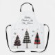 Bring festive farmhouse charm into your kitchen with this personalized Christmas baking apron featuring three buffalo plaid Christmas trees, winter snowflakes, and elegant holiday script. Customize the text with your family name or holiday message — perfect for cookie decorating, Christmas brunch, or holiday cooking fun.
