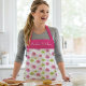 Delight the cook in your house with this personalized apron, featuring a whimsical floral pattern of pink and green watercolor daisies and polka dots on a white background. Near the top, the words "[Your Name's] Kitchen" or other text of your choice appear in editable white handwriting script on a pink background.