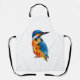 aquarelle traditionnelle d'un petit oiseau kingfisher aux aquarelles bleues et orange sur un tablier.