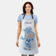 Un tablier avec une jolie photo d'un petit bonhomme de neige. Debout dehors en hiver avec de la neige qui tombe tout autour. Ce mignon petit gars est habillé en casquette tricoté bleu et foulard.