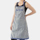 Dark blue and gray French style pin stripes with dark blue borders and waist and neck straps. Add your name.