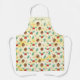 Apron avec un motif de Noël mignon avec des cônes de pin et saint sur un arrière - plan d'aquarelle jaune avec des petits cercles blancs éparpillés autour.