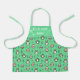 Amusant tablier pour enfants aquamarins avec un mignon motif avec de jolis pingouins aux écharpes rouges et bleues et des casquettes rouges et noirs, décoré de flocons de neige et d'arbres de Noël. La légende de la partie supérieure, décorée de whisky stylisé et d'épingle à rouler, se lit sous Chef en lettres blanches et est personnalisable avec le nom de l'enfant.