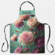 Ce bel Apron dispose d'un magnifique bouquet vintage avec des pivoines rose pâle et bordeaux sur arrière - plan turquoise et verte. Design élégant et romantique. Tablier de charme pour femmes et hommes. Avec ce tablier de travail domestique et aussi jardiner immédiatement plus de plaisir! Nom personnalisé.