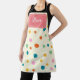 Ce tablier personnalisé adorable présente des pois colorés avec une bannière nominative rouge mignonne.