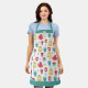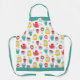 Ce tablier mignon présente un motif bleu, or, rose et blanc de pots de thé ou de café, tasses, jarres de miel et de confiture, ainsi que d'autres images de cuisine de style boho. En haut et en bas se trouve une bordure bleue turquoise assortie. Votre monogramme est en turquoise assorti sur une bannière circulaire revêtue d'or. Jolie, et personnalisée juste pour elle !