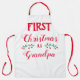 Ce tablier de Noël est parfait pour célébrer le premier Noël en tant que grand-père. Le texte dit Premier Noël comme grand-père en lettres rouges modernes sur un arrière - plan blanc.