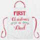Ce tablier de Noël est parfait pour fêter le premier Noël en tant que père. Le texte dit Premier Noël comme père en lettres rouges modernes sur un arrière - plan blanc.