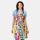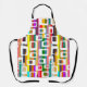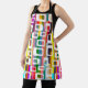 Ce tablier a un design moderne du milieu du siècle de rectangles avec des trous sur un champ de rayures.