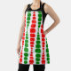 Ce tablier de Noël a un design moderne du milieu du siècle de rectangles ronds rouges et verts de taille croissante et décroissante qui tournent verticalement sur un champ de blanc.
