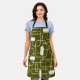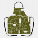 Ce tablier a un design moderne du milieu du siècle de rectangles ouverts et fermés en blanc sur un champ de camo vert.