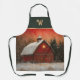 Tablier Red Barn w Star n Winter Trees Farmhouse Monogram