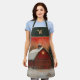 This stunning farmhouse style apron features a red barn with a golden star on it at night, with stars twinkling in a reddish sky. Green trees, with snow on their boughs, frame the sky, and snow is covering the ground. Your or your recipient's initial appears in gold against a colorblock of deep emerald green. The apron's straps ae a matching dark green. This would make a great gift for Christmas or any time of the year.