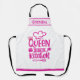 Faites savoir au monde qui est la reine cuisinière avec ce tablier amusant avec du rose chaud sur blanc et personnalisé avec un nom ou monogramme. Un grand cadeau pour le jour de la mère, l'anniversaire, ou n'importe quand.