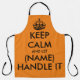 Restez calmes et laissez (nom) le gérer drôle tablier barbecue orange pour les hommes et les femmes. Modèle de typographie vintage avec couronne. Tabliers de cuisine de cuisine personnalisés dans n'importe quelle couleur. Modèle tendance avec design de typographie à grandes lettres. Ajoutez votre propre nom ou une citation humoristique. Créez votre propre cadeau d'anniversaire pour le grill master, maman, papa, soeur, frère, père, mère, épouse, mari, ami, oncle, tante, petit ami, copine, petite amie, grand-mère, petits-parents, enfants, patron, collègue, chef, cuisinier, collègue, coach, enseignant, infirmière, couple mariage etc. Disponible en petite, moyenne et grande taille. Idéal aussi pour la fête du dîner, la boulangerie, le lavage de vaisselle, l'art & l'artisanat, etc. Faire un sien pour lui et elle. Cadeaux d'Humours pour amis et famille.