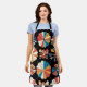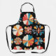 Tablier Retro Black Rainbow geometric Flowers Pattern
