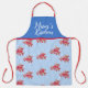 Red Floral Shabby Chic Blue En vichy "Mum's Kitchen" Apron, avec un nom entièrement personnalisable. Conçu à partir de ma photo et de mon écriture de jardin d'origine.