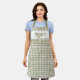 Ce tablier est prêt à être personnalisé avec un nom et présente ma main peinte en vichy style plaid avec une grille de bandes vert sauge contre un arrière - plan blanc.