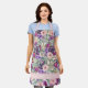 Tablier tout-en-plan mignon et girly avec une jolie couleur violette et rose et imprimé feuille vert sauge. Texte dit, "Cuisine YOURNAME" Personnalisez avec votre nom ou tout texte que vous choisissez.