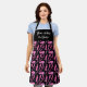Joli salon de coiffure ou coin coiffeur avec arrière - plan noir avec motif répétitif de sèche-cheveux, ciseaux, peigne et autres outils de style. Ajoutez votre nom personnel ou le nom de votre entreprise de salon dans une police de style manuscrite de script amusant. Créez un tablier styliste pour coiffeur, qu'il s'agisse d'un ou de plusieurs, pas de commande minimum, pas de frais de design.
