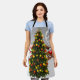 Tablier Santa claus and reindeer behind a christmas tree.j