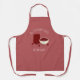 Un tablier au design Thanksgiving blanc, rose et bordeaux. Les personnages souriants de sauce aux canneberges sont entourés des mots "Toutes les sauces aux canneberges sont bienvenues!". Ces mots peuvent être customisés comme vous voulez.