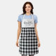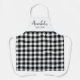 Un tablier design, moderne, personnalisé. Ce design a un motif en vichy noir et blanc avec un texte de script élégant pour votre nom et style classique petit type ci-dessous pour votre emplacement. Un tablier de style ferme simple, moderne.